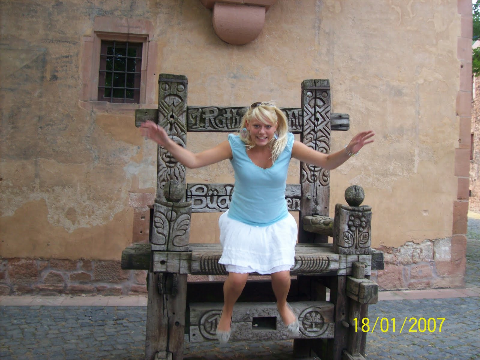Så här e vi, vi hade lite kul över denna stol vi hittade. Grymt stor var den, o här har dom även en stor medeltids marknad vi va på för några månader sedan . =D Lite roligt bild där på mig som hoppas men lyckas i alla fall titta in i kramran =P haha